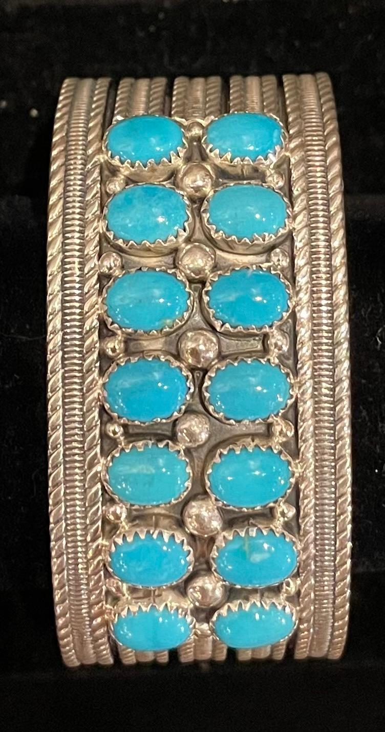 Arviso Silver 14 Turquoise Stone Bracelet - Sterling Silver - Indigenous Handmade
