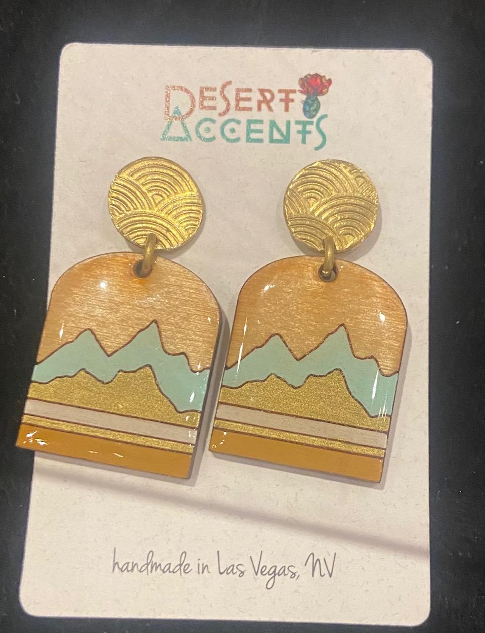 Boho Wood Mountain Dangle Earrings Blue Gold