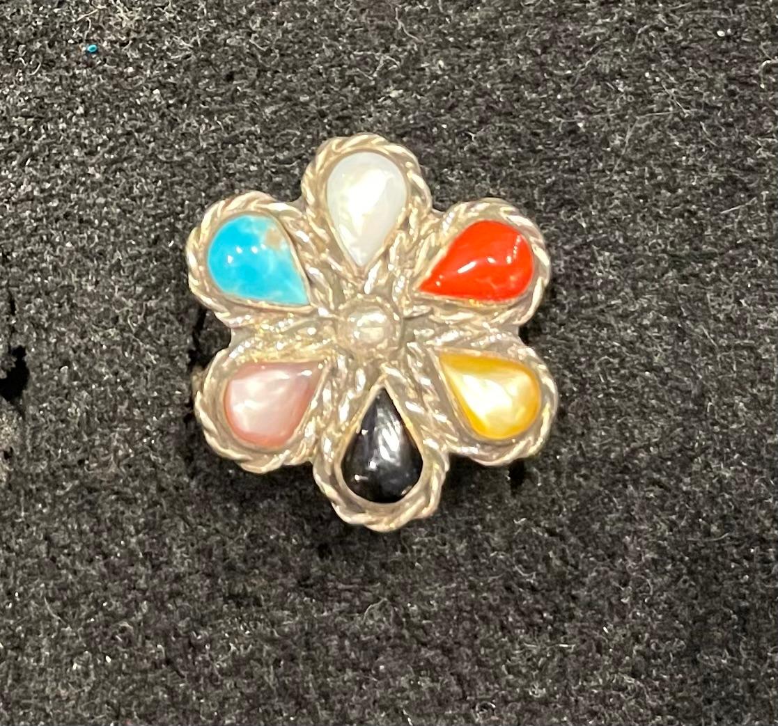 Flower Multistone Ring, Sterling Silver, size 7