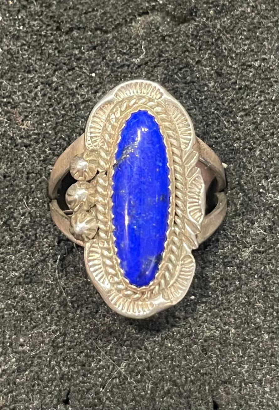 Lapis Oval Ring, Sterling Silver, size 9 1/2