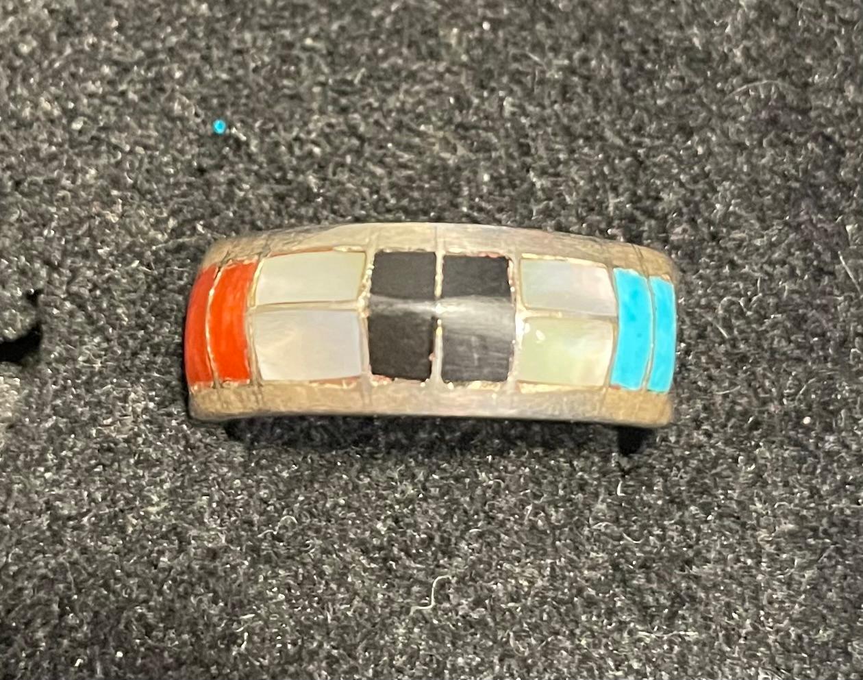 Multi Inlay Ring, Sterling Silver, Size 9 1/2