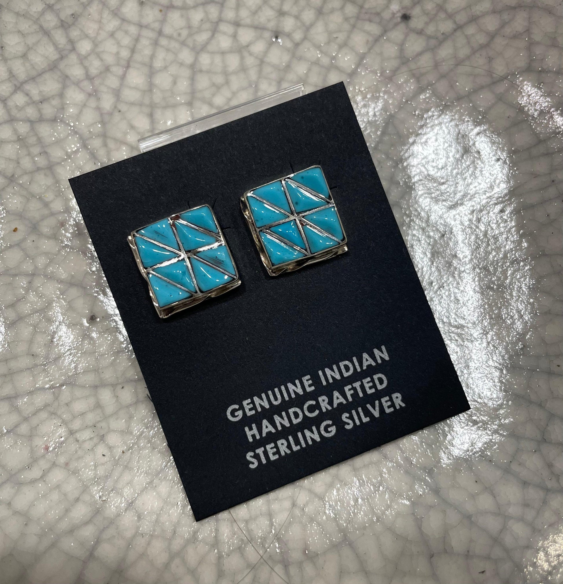 Square Turquoise Post Earrings - Indigenous Handmade - Sterling Silver