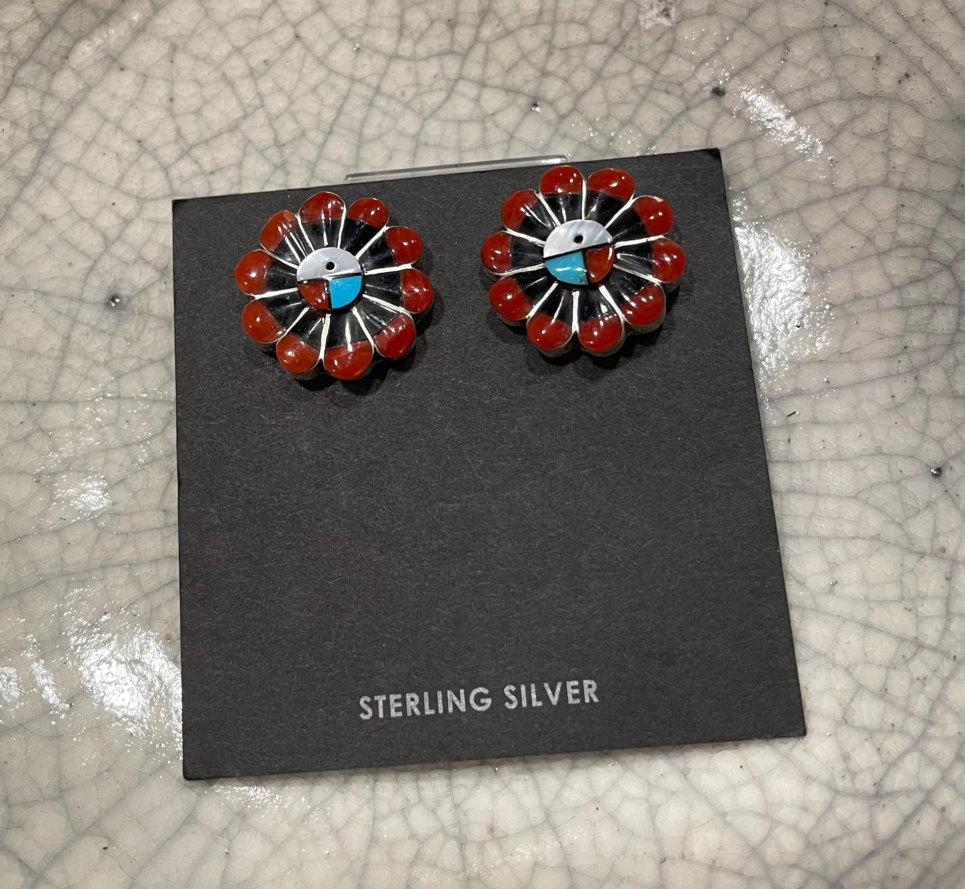 Sunface Flower Coral Post Earrings - Indigenous Handmade - Sterling Silver