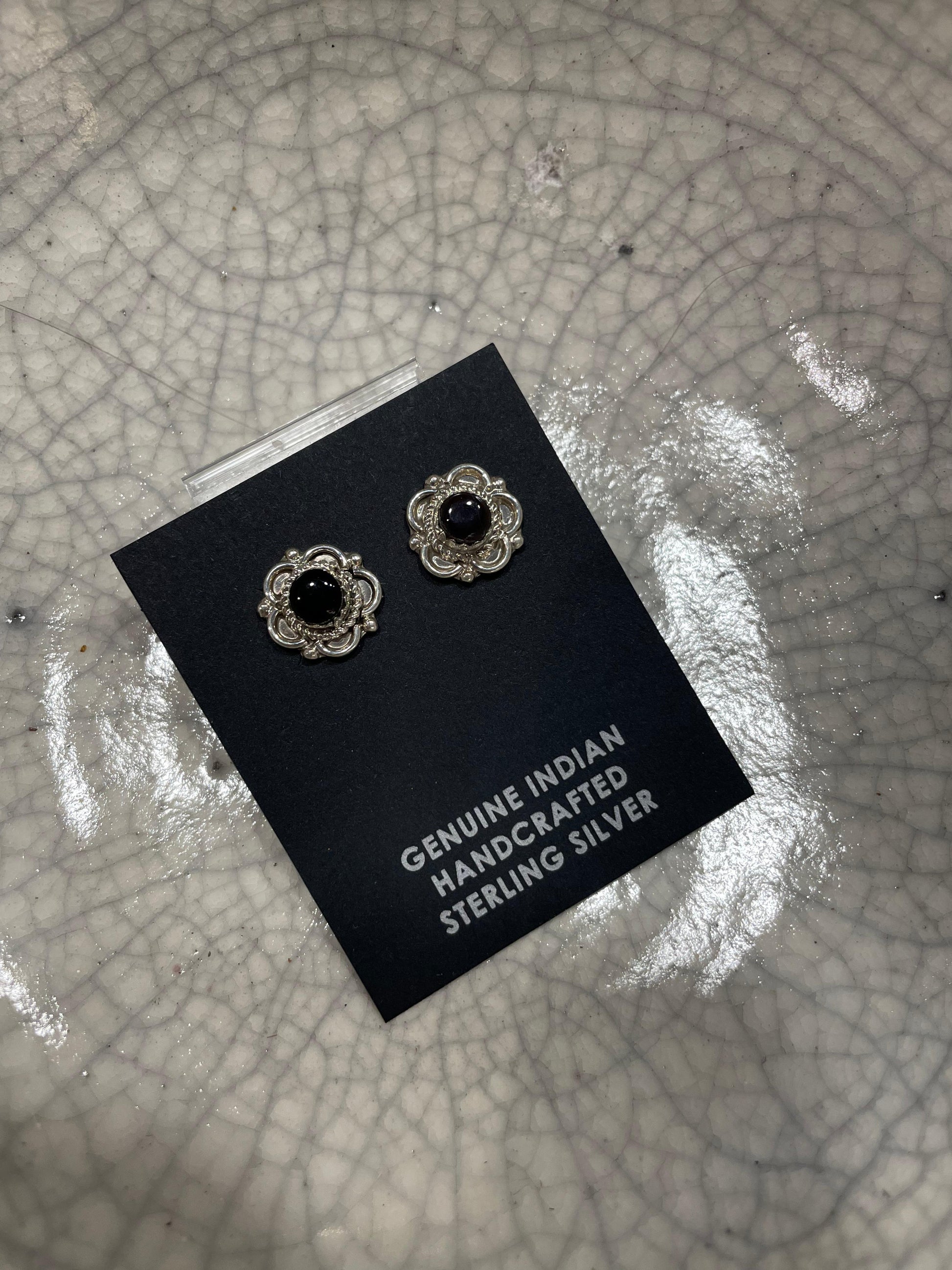 Tooled Assorted Stone Post Earrings - Indigenous Handmade - Sterling Silver