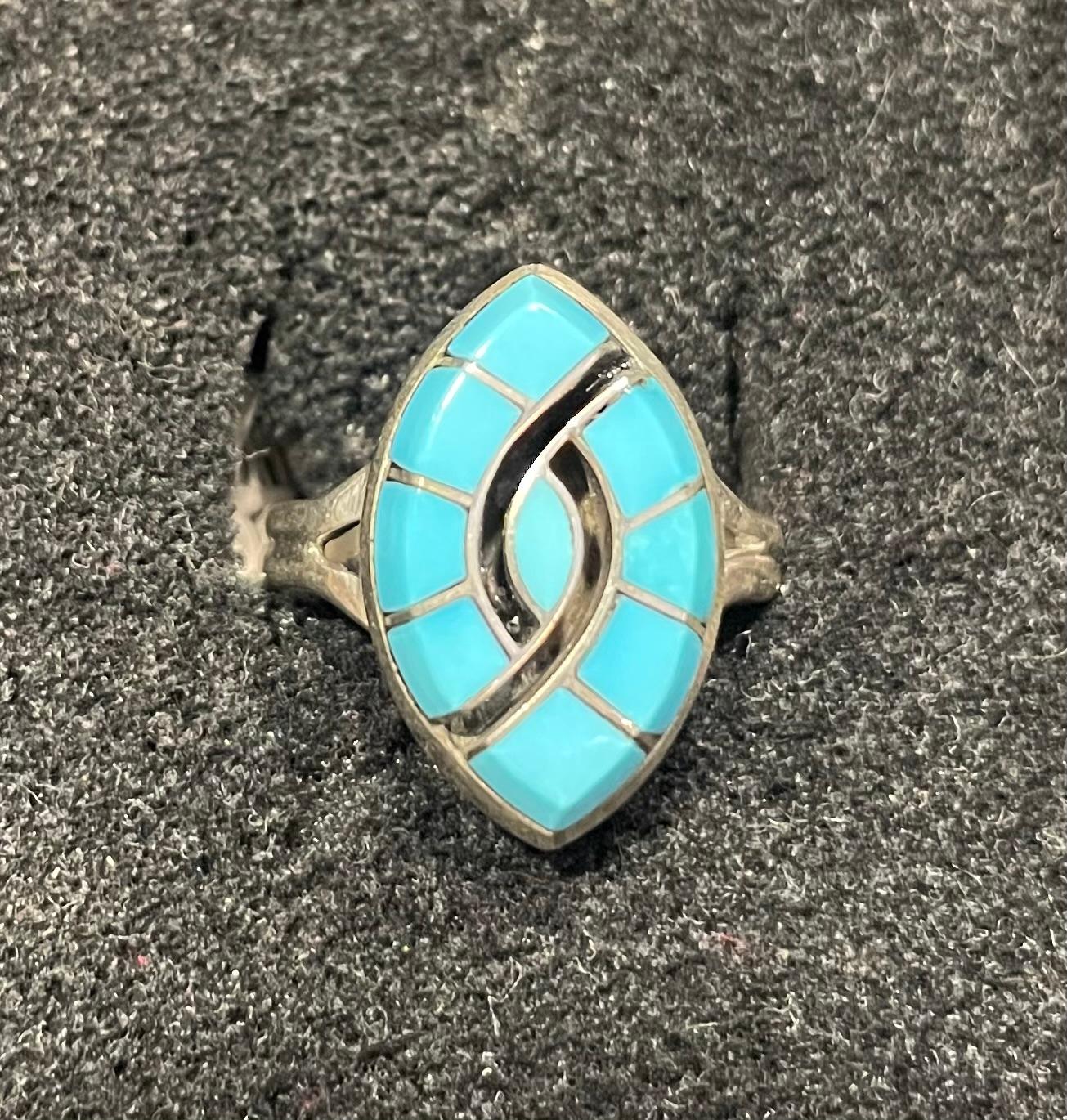Turquoise Football Inlay Ring - Indigenous Handmade - Sterling Silver