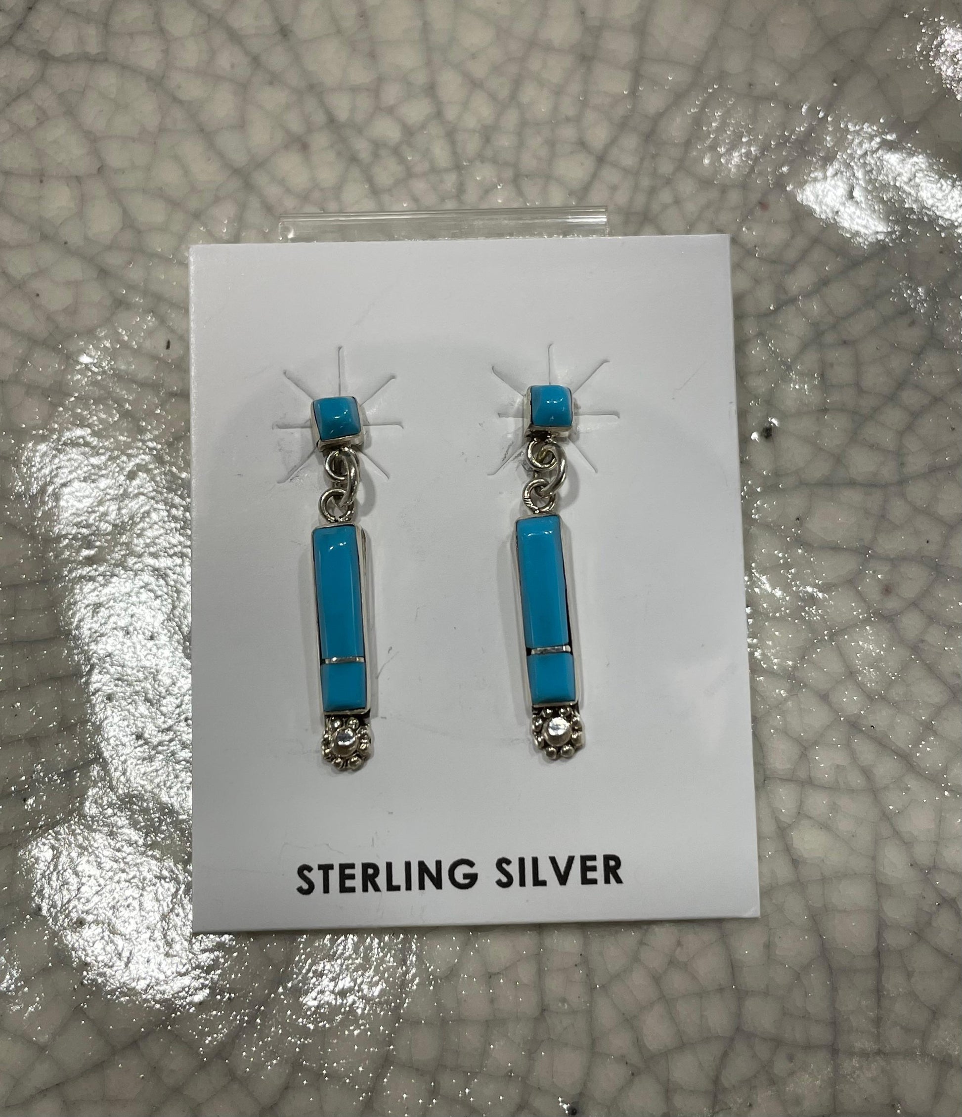 Turquoise Inlay Dangles - Indigenous Handmade - Sterling Silver