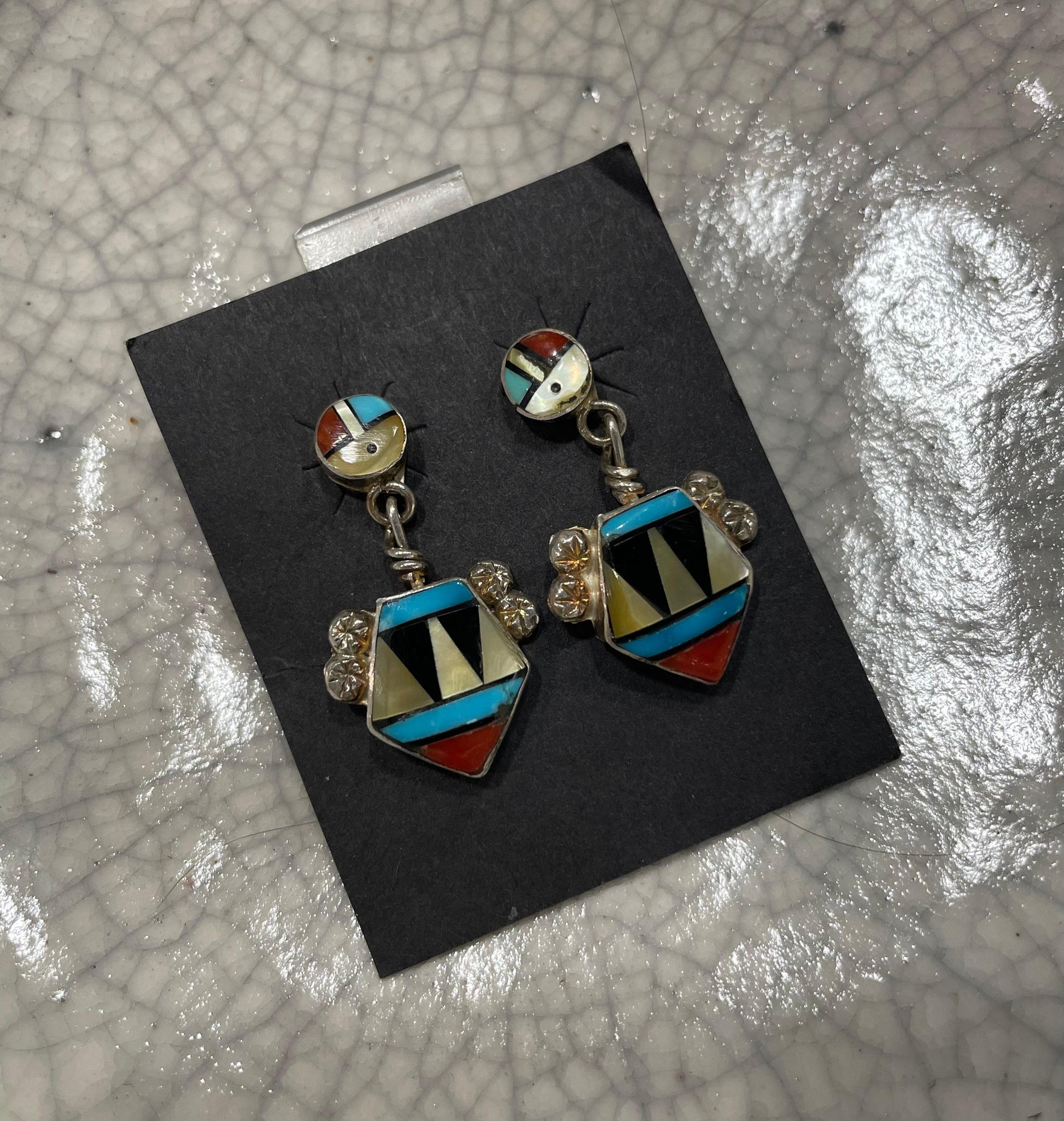 Zuni Multi Stone Dangle Earrings - Indigenous Handmade - Sterling Silver